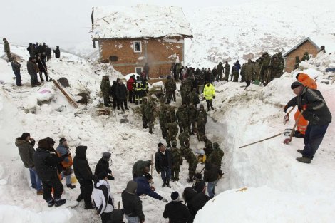Mnoge kuće i štale sad popuštaju pod nanosima belih pahulja, reke i jezera su okovani ledom koji se topi i vodostaj reka se povećava .